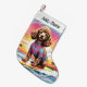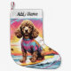Meia de Natal do cão Poodle surfando em uma prancha de surfe. Adicione esta imagem a outros produtos. Adicione seu próprio texto também. Muitos animais de estimação em minhas lojas.