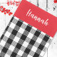 Este design apresenta um padrão vermelho personalizado de Natal, um simples design clássico minimalista, com um roteiro de caligrafia na moda, um cheque de búfalos vermelho e preto, uma diversão festiva de inverno, um padrão de costura flanela, uma decoração de casa de feriado personalizada, estilo clássico e simples, excelente para um pacote de presentes de estoque de Natal, um nome personalizado personalizado