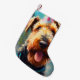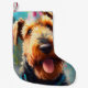 Meia De Natal Pequena Cão Airedale com chapéu de aniversário e balões