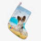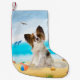 Cachorro fofo sentado na praia é uma ideia de presente perfeita para alguém que ama esta raça de cães.