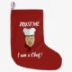 Cabeça de chef com chapéu, corcunda vermelha e texto personalizado.
