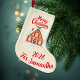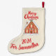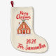 This beautiful stocking features the same enchanting, snow-covered gingerbread house, but now on a soft, neutral cream and beige background. The design feels warm, cozy, and wonderfully elegant. The bright red script "Merry Christmas" pops beautifully, while the customizable bottom line proudly reads "For Samantha" and "2026", making it a truly one-of-a-kind keepsake.