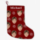 Celebrar as férias com um estoque feito apenas para o seu filho! Este design personalizado apresenta um fundo vermelho festivo, decorado com flocos de neve brancos e o rosto do seu filho repetido por toda parte. O nome deles aparece no topo, fazer uma manutenção única que se sente verdadeiramente especial. Perfeito para as tradições de natal da família, esta meia traz personalidade, diversão e alegria de feriado para sua decoração enquanto fazer seu filho se sentir parte da magia.