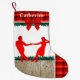 Dançarinos do balanço com a meia pequena do Natal da xadrez vermelha. Edite o nome na parte dianteira com a personalização/personalize o botão ou pode ser suprimido.