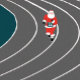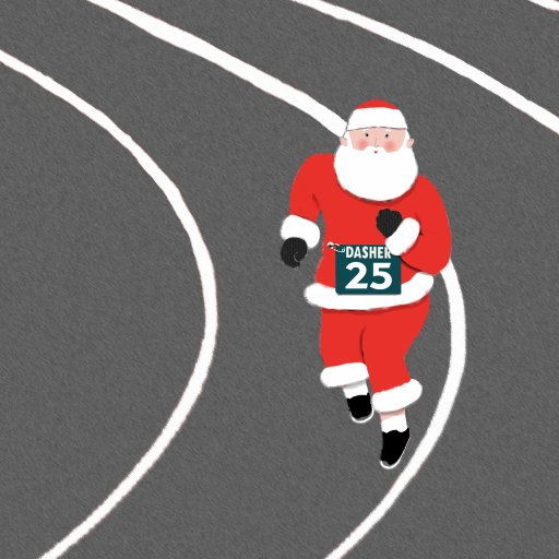 Criativo correndo trilha e estocagem de Natal no campo com Papais noeis correndo. Editar texto para adicionar nome.