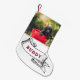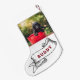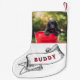 Foto de Cão Festivo e Nome Fita Friso Pequeno de Natal. Design festivo com o nome de um cão numa fita clássica e numa fotografia personalizada. Personalize as meias do seu cão - adicione a foto do seu cão e personalize-a com o nome. Há muito espaço para as guloseimas e para o excelente.