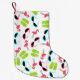 Uma meia do Natal que caracteriza um teste padrão de flamingos cor-de-rosa, de óculos de sol retros do olho de gato, e de chinelos.