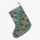 Meia De Natal Pequena flor azul-azul-turquesa prateada boêmica