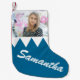 Adicione um toque pessoal ao seu decoro de férias com esta meia de Natal azul festiva com uma faixa de fotos personalizável! Inclua uma foto apreciada e o nome de seu amado para uma manutenção de férias verdadeiramente única. Projetada para segurar doces, pequenos presentes, ou surpresas, esta meia leva alegria e charme a lareiras, árvores ou exibições de feriados. Celebre a temporada com uma decoração de tipo único que espalha alegria e torna o Natal extra especial para a família e amigos.