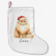 Meia De Natal Pequena Gato Laranja de Aquarela em Santa Hat