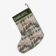 Natal Winter Woodland Trees Pattern Faux Embroidery Nome Personalizado Stocking apresenta uma falsa floresta de inverno bordado com árvores cobertas por padrão de neve com seu nome personalizado. Criado por feriados Evco www.zazzle.com/store/evcoholidays