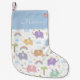 Dê ao seu filho seu próprio e adorável padrão de elefante pastel com esta adorável estocagem de Natal. Stocking tem elefantes roxos, azuis e amarelos e um fundo azul atrás do nome do seu filho. Há também arco-íris, pássaros, nuvens, corações e flores. Este estoque de férias monograma personalizado faz um presente de excelente para um aniversário, Natal ou outro feriado.