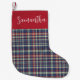 Meia De Natal Pequena Padrão de Xadrez Marinho Azul do Script de Caligra