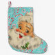 Design doce do papai noel do vintage de um Papai Noel alegre contra um fundo de turquesa com peppermints e bastões de doces.
