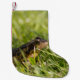 Um sapo comum (temporaria de Rana) que esconde na grama.