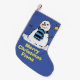 Prepare-se para uma visita de Papai Noel! O Christmas Stocking apresenta uma ilustração divertida de um boneco de neve em uma cena de inverno gelado e nevado. Personalize com sua própria escolha de nome. Snowman está à espera do Pai Natal!
