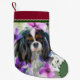 Estocagem de Natal com Tricolor Cavalier charles spaniel art design. floral. Feriado de arte. Cores vermelhas e verdes