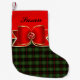 Essa elegante estocagem apresenta uma parte superior em vermelho, acentuada por um arco joalhado, com a parte inferior em xadrez verde e tartã vermelha. A xadrez é um pouco de cidade e de país, o que contrasta bem com o arco vermelho e a joia. Digite seu nome na seção Personalizada para que apareça no estoque de Natal.