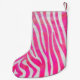 Meia De Natal Pequena Zebra, rosa-quente e Impressão branco