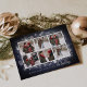 Elegante cartão com fotos de feriado apresenta seis fotos em um layout de colagem em grade, enquadrado por flocos de neve brancos em um rico fundo azul da meia-noite que evoca uma noite de inverno nevada. Personalize este belo Cartões de foto de Natal com sua saudação personalizada e nomes ao longo da base em uma mistura chic de serifas clássicas e tipos modernos de caligrafia.
