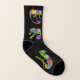 Estas meias divertidas apresentam ilustrações de um camaleão em um estilo de desenho animado fofo, em cores brilhantes e vibrantes, contra um fundo preto.