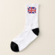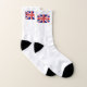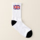 Meias conhecidas feitas sob encomenda do esporte da bandeira britânica de Union Jack. Design inglês do orgulho com texto personalizado. Adicione seu próprio monograma, citações engraçadas, dizer ou slogan. Reino Unido britânico, símbolo do GB Grâ Bretanha. Ideia do presente de aniversário da novidade para ele ou ela. Criar suas próprias meias brancas do tênis para o gym, a malhação e o mais.