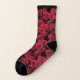Estas meias bonitas são decoradas com um teste padrão abstrato de repetição das rosas vermelhas em um fundo preto. Maravilhoso para jardineiro e todos os amantes da flor!
