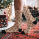 Celebre a temporada festiva com essas meias de Natal de bolinhas de homem de biscoito de gengibre marrom. Com adoráveis homens de biscoito de gengibre e bolinhas sutis em um fundo marrom alegre, essas meias são perfeitas para adicionar um toque de capricho ao seu guarda-roupa de férias. Ideais para se aconchegar ao lado da lareira ou como um presente de Natal divertido.