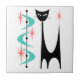 Meu design de Gato Atômico Negro com Bumerangue Aqua e Starbursts rosa em um azulejo cerâmico branco. Todas as imagens protegidas ©Donna Mibus. Minha imagem de Atum Atômico está registrada no Escritório de Direitos Autorais dos EUA. Nenhuma parte dele pode ser usada ou copiada sem permissão. Visite https://donna-mibus.pixels.com/ para mais informações sobre o meu trabalho.