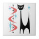 Meu design de Gato Atômico Preto com Bomerangas Rosa e Starbursts Azuis em um azulejo cerâmico branco. Todas as imagens protegidas ©Donna Mibus. Minha imagem de Atum Atômico está registrada no Escritório de Direitos Autorais dos EUA. Nenhuma parte dele pode ser usada ou copiada sem permissão. Visite https://donna-mibus.pixels.com/ para mais informações sobre o meu trabalho.