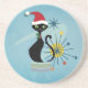 Acelere sua decoração de feriado de barware este ano com este design inspirado no século médio retrô de um gato negro sentado em um banco e vestindo um chapéu de Papai Noel.