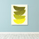 Canvas moderna do século médio, arte em vagens de sementes em tons de verde e amarelo num fundo amarelo pálido. Assinado pelo artista Gail Gabel. Uma adição perfeita ao estilo do seu meio século.