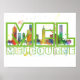Poster com uma linha do horizonte Melbourne e um código de aeroporto
