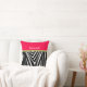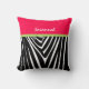 Travesseiro com padrão de listras de zebra rosa e branco. Perfeito para decoração de berçário de safari na selva para menina recém-nascida ou decoração de quarto de menina grande ou decoração de quarto de adolescente ou até mesmo para o She Shack da mamãe. Altere a cor do fundo (o rosa) para qualquer cor clicando em personalizar e, em seguida, editar na ferramenta de design. Clique em Fundo (à esquerda na tela) para usar a ferramenta de cor, escolha entre as amostras mostradas ou clique no sinal de mais (+) para inserir o código hexadecimal RGB no campo inferior direito ou arraste o ponto para encontrar sua cor. Basta pesquisar na Internet por código hexadecimal RGB para encontrar sua cor e criar um travesseiro exclusivo de designer com sua cor personalizada. Se preferir personalizar, você pode adicionar um campo de texto ou campo de plaqueta por clicar em editar/personalisar/personalisar mais