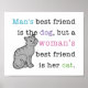 Os cães podem ser os melhores amigos do homem, mas um gato é o melhor amigo de uma mulher neste poster de gato engraçado que apresenta um desenho de gato bonito e lê, "O melhor amigo do homem é o cachorro, mas o melhor amigo de uma mulher é o seu gato."