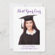 A citação, Best Year Ever, escrita em rico roxo ribbon acentua sua foto neste anúncio elegante de graduação.