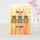 Este design delicioso apresenta três pequenos ursos, cada um segurando um bloco, com uma letra que soletra "MOM". O texto na frente diz: "Melhor MÃE de sempre". Na dentro, você pode adicionar seu próprio texto.