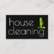 design de cartão de visita de limpeza de casas modernas com uma elegante tipografia na frente, que mostra um símbolo de limpeza de casas junto com as informações de contato da sua empresa. Personalize os detalhes com suas próprias informações de governanta em estilo.