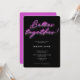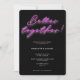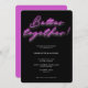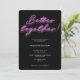 "Melhor juntos!" Convite para Festa de noivado de Neon Rosa Moderno com letra de sinal de néon rosa em fundo preto, parte traseira do convite é um rosa correspondente (você pode sempre mudar a cor usando a ferramenta design, se quiser).