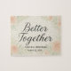 Celebre o amor de uma forma verdadeiramente única com nosso Quebra-cabeça personalizado de casamento "Melhor Juntos". Apresentando uma caligrafia elegante, enquadrada por florais de aquarelas suaves em tons de mancha e de sábio, este quebra-cabeça duplica como uma manutenção significativa e um favor divertido para os seus convidados. Cada quebra-cabeça é desenhado com um pano de fundo romântico e a frase "Melhores Juntos" como peça central. Abaixo da frase, você pode personalizar com seus nomes e data de casamento, fazer cada peça um lembrete querido de seu dia especial. Perfeito como um favor memorável de casamento, presente de chá de panela, ou manutenção de aniversário, esta quebra-cabeça simboliza como duas vidas ajustado perfeitamente juntas. Design: Fundo floral de aquarela com elegante caligrafia Personalização: Nomes personalizáveis e data de casamento Uso: favores de casamento, keepsakes ou presentes de noivas Tema: Romântico, eterno e significativo Torne seu casamento inesquecível com um favor que é brincalhão e sincero — porque o amor é a peça que falta.