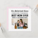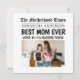 Surpreenda sua mãe com um cartão digno de página! Este cartão de saudação personalizado ao estilo do jornal apresenta uma manchete ousada "Melhor Mãe Nunca", o seu nome de mãe e uma fotografia especial para a fazer sentir verdadeiramente celebrada. Projetado com uma estética de jornal tradicional divertida, este cartão é perfeito para o Dia das Mães, aniversários ou qualquer vez que você quiser mostrar sua apreciação de uma forma divertida e única.