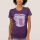 Uma camiseta roxa para mulheres que adoram gatos. Tem a silhueta (feita de impressão de guepardo roxo) de um gato e de uma pata de tinta. O texto diz "A Melhor Mãe de Gato Nunca!" Selecione uma cor diferente de t-shirt se pretender.