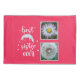 Ilustração cômoda e giratória com cabelo, pestanas, estrelas pequenas e dois modelos fotográficos. Clique em personalizar para alterar as fotos para a da sua irmã (fotos quadradas funcionam melhor) ou comprar-as como estão.