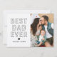Celebre o dia especial do seu pai dando-lhe um cartão com fotos de Dia de os pais. A placa de Dia de os pais moderna apresenta um fundo branco, a frase "Melhor Pai Nunca" em uma fonte na moda, espaços reservados para seu texto e foto personalizados e um padrão geométrico branco e preto na parte traseira da placa.