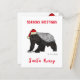 Envie saudações de Natal inesquecíveis do Papai Noel Mel com este Cartão Plano de Natal do Texugo do Mel Personalizado e Divertido, apresentando o nome da sua família e um texugo do mel selvagem com um chapéu de Papai Noel. Com uma citação irônica e irreverente de Natal, esta ilustração de um animal badalo adiciona humor sarcástico e um toque malicioso aos seus votos de Natal. Perfeito para famílias que amam cartões de Natal personalizados e engraçados, papelaria festiva única e saudações de Natal com atitude. Adicione seu sobrenome para criar um cartão personalizado que fará amigos e parentes rirem nesta época. Arte e citação festivas originais da artista Catherine Sweetman.