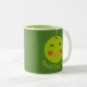 Esta caneca na moda apresenta uma maçã verde brilhante com um sorriso largo e bochechas vermelhas rosadas. Há um texto personalizável abaixo da maçã que diz melhor professor.
