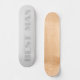 Este Skateboard do Melhor Homem apresenta as palavras Melhor Homem em texto metálico prateado sobre um fundo metálico prateado mais claro.