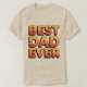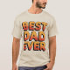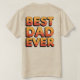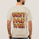 Este é um melhor Pai de tendências. Esta t-shirt apresenta o melhor Pai de sempre em letras cor de laranja retrorreflectoras. As letras são letras retrorreflectoras grossas. As letras têm um gradiente laranja. A camisa é uma cor de areia. A imagem do Melhor Pai do mundo está na parte frontal e traseira da camiseta.