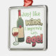 Este ornamento temático do vinho engraçado faz o stuffer perfeito do presente de época natalícia ou da meia para o amante de vinho em sua vida. Este metal superior ornamento moldado lê "apenas como o vinho que eu melhoro com idade" e caracteriza uma garrafa e um vidro de vinho.