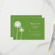 Este é o RSVP coordenador da linha de casamento Melhores Desejos. Uma leve poeira de sementes de dandelion decora a frente e o verso deste convite. É apresentado no papel de base; no entanto, sugiro o peso e a textura do papel de linho.